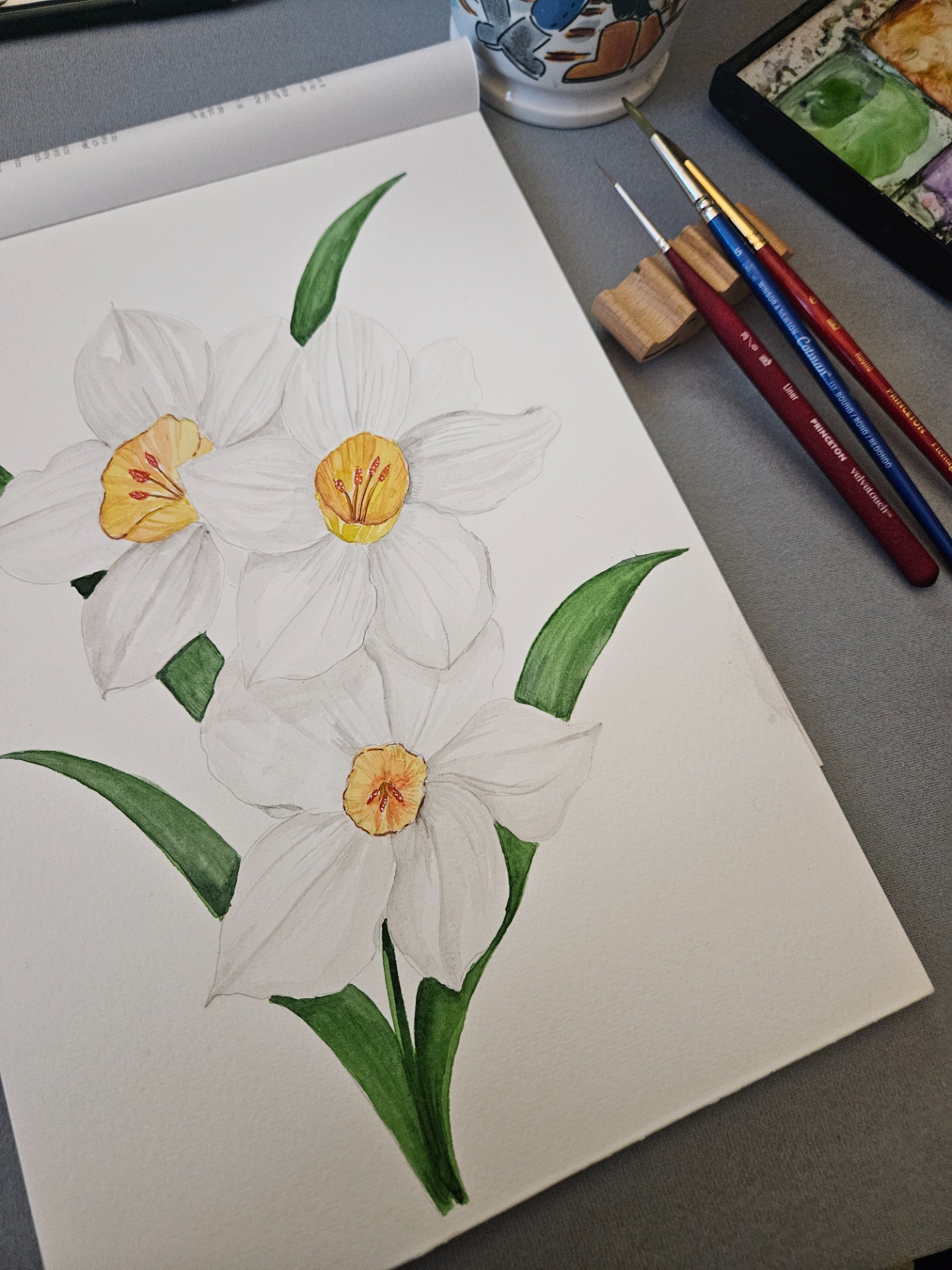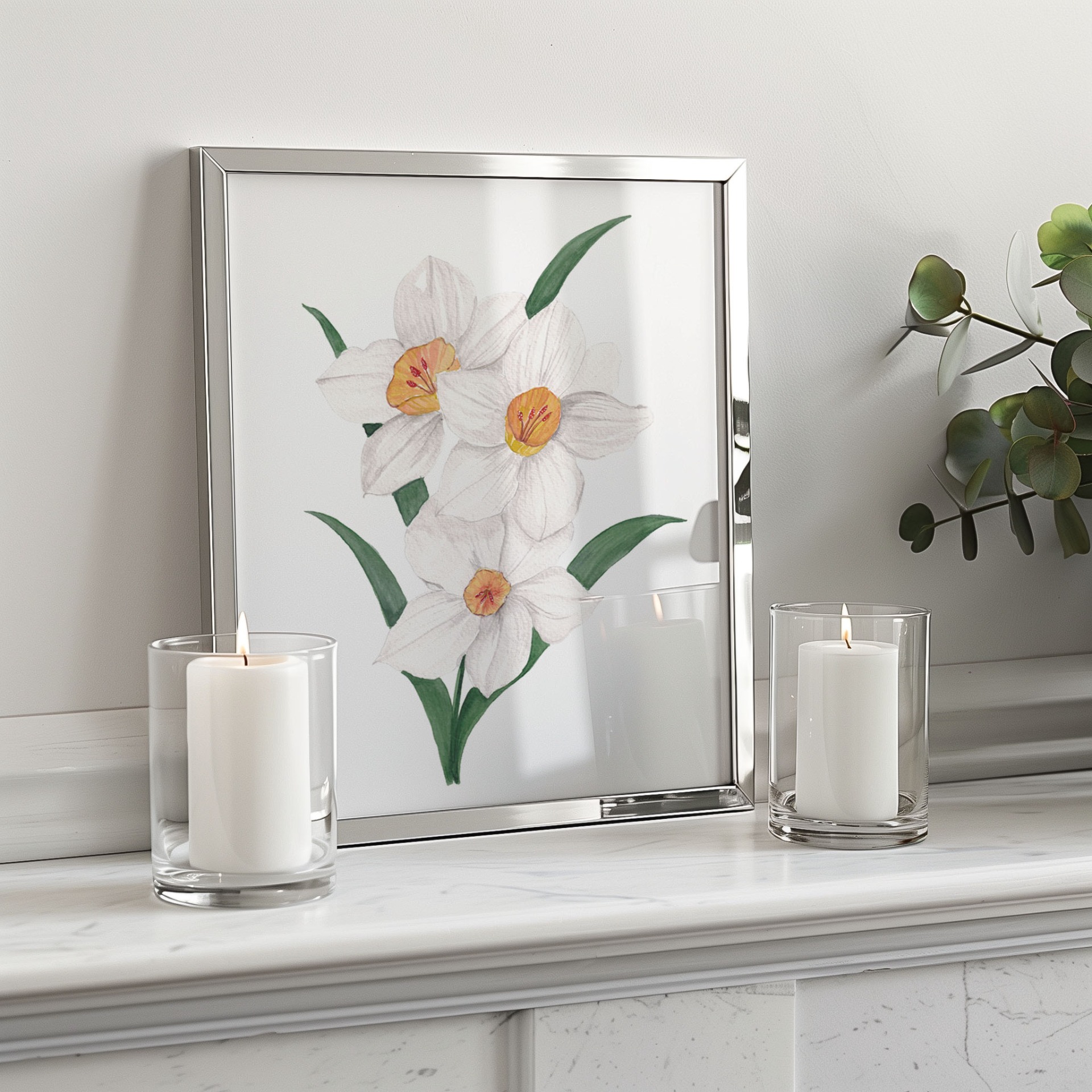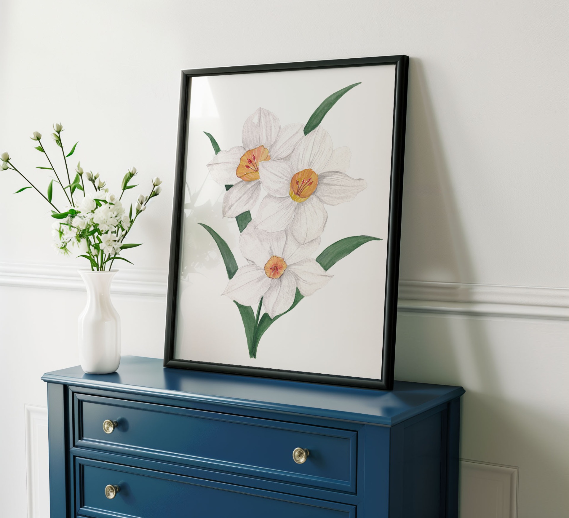 This is an original painting of white Daffodils made using professional watercolors. This is painted on high quality 100 % cotton, 300gsm acid-free watercolor paper. Signed and stamped by the artist. This is part of the White Spring Series.