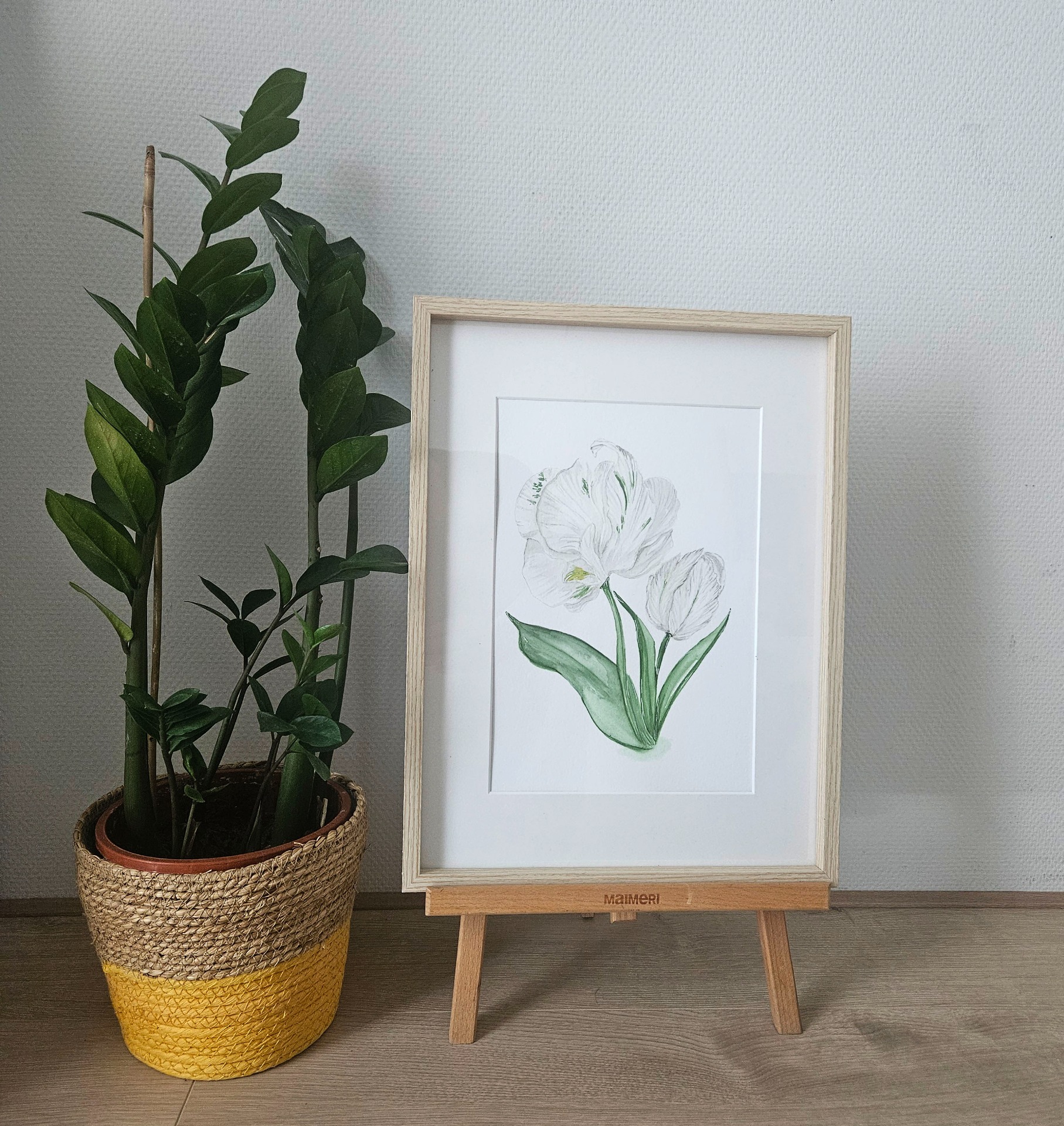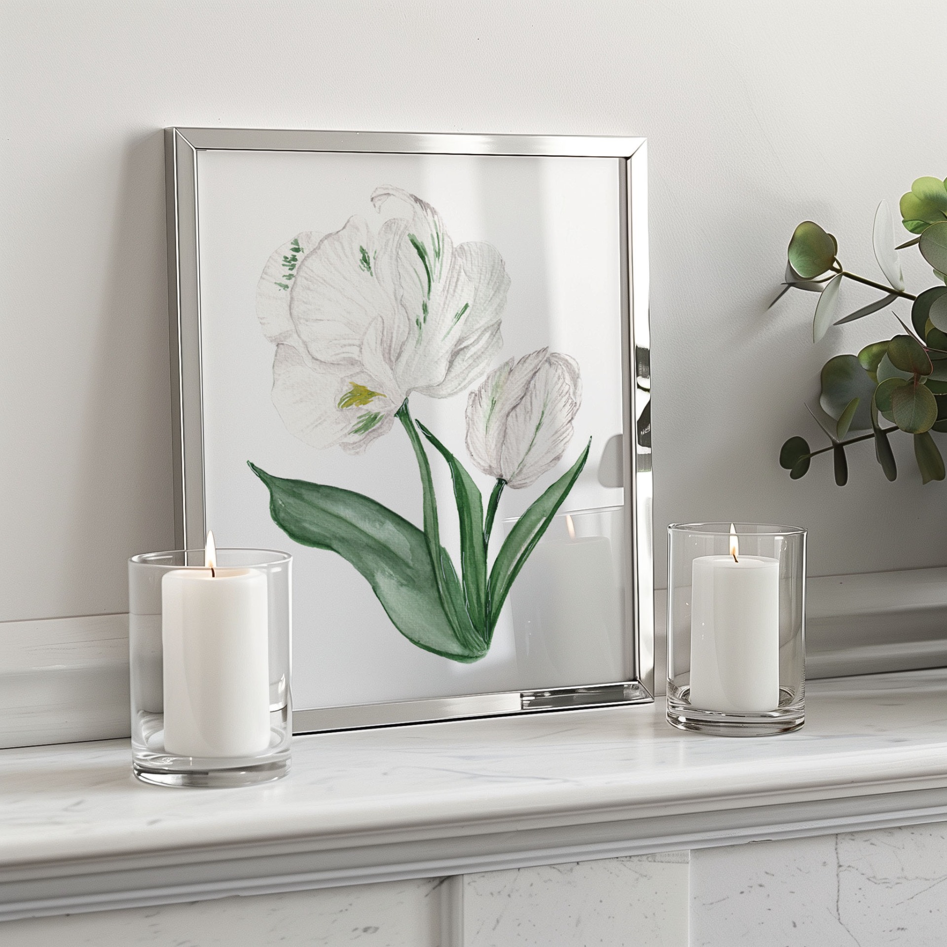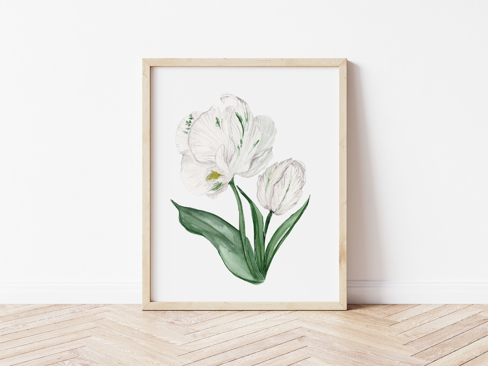 This is an original painting of white Parrot Tulip made using professional watercolors. This is painted on high quality 100 % cotton, 300gsm acid-free watercolor paper. Signed and stamped by the artist. This is part of the White Spring Series.